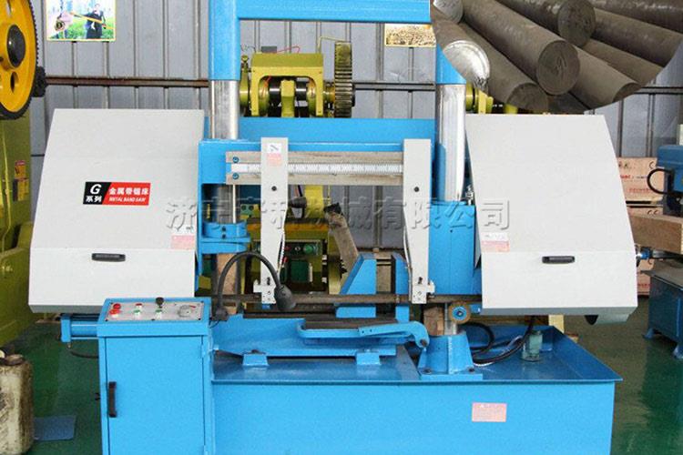 主要部件有:底座、床身、立柱、鋸梁和傳動機構;鋸條導向裝置;工件夾緊裝置;鋸條張緊裝置;送料機構,液壓傳動系統;電氣控制系統;潤滑及冷卻系統。